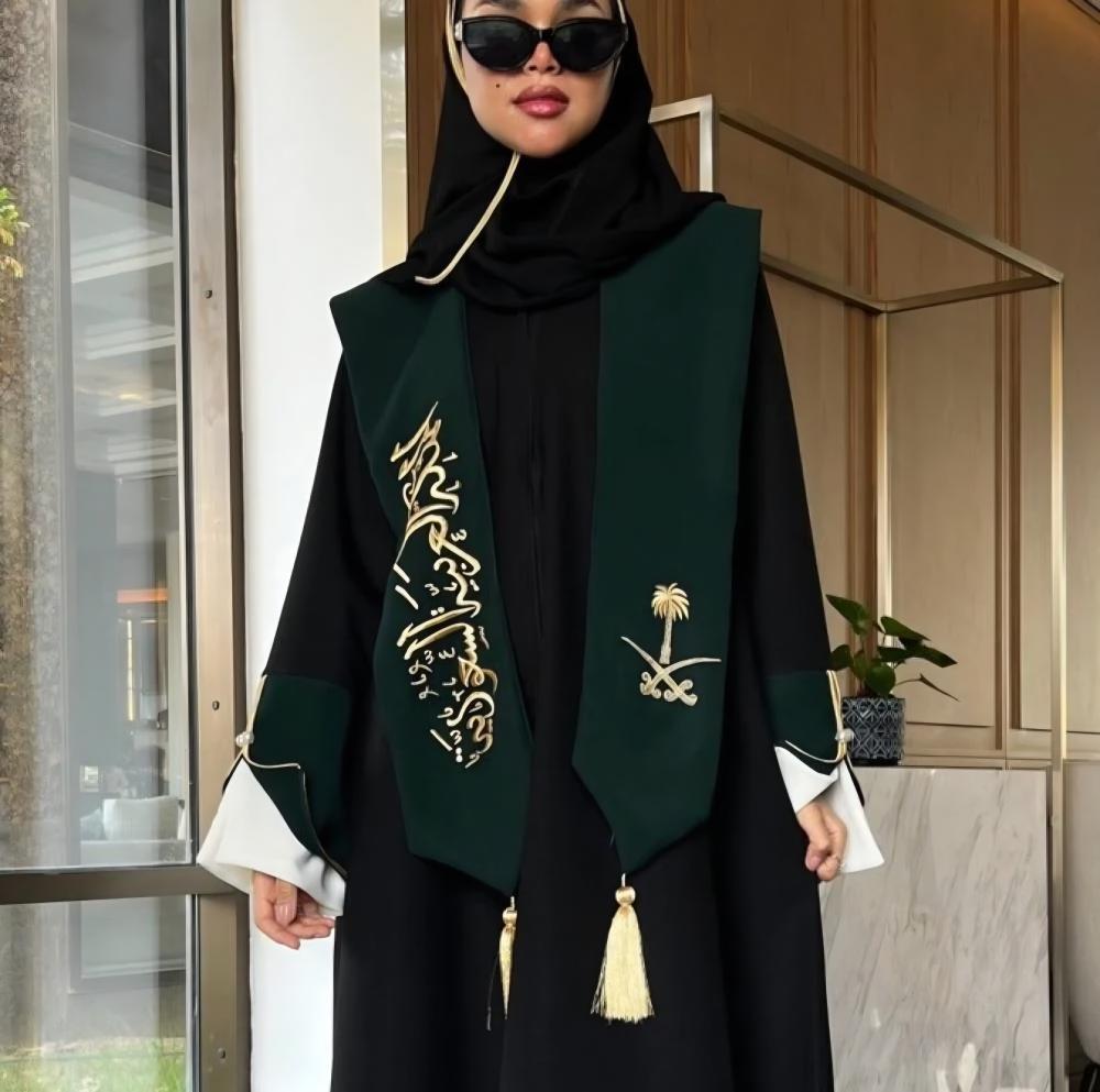 عبايه مع وشاح اليوم الوطني
