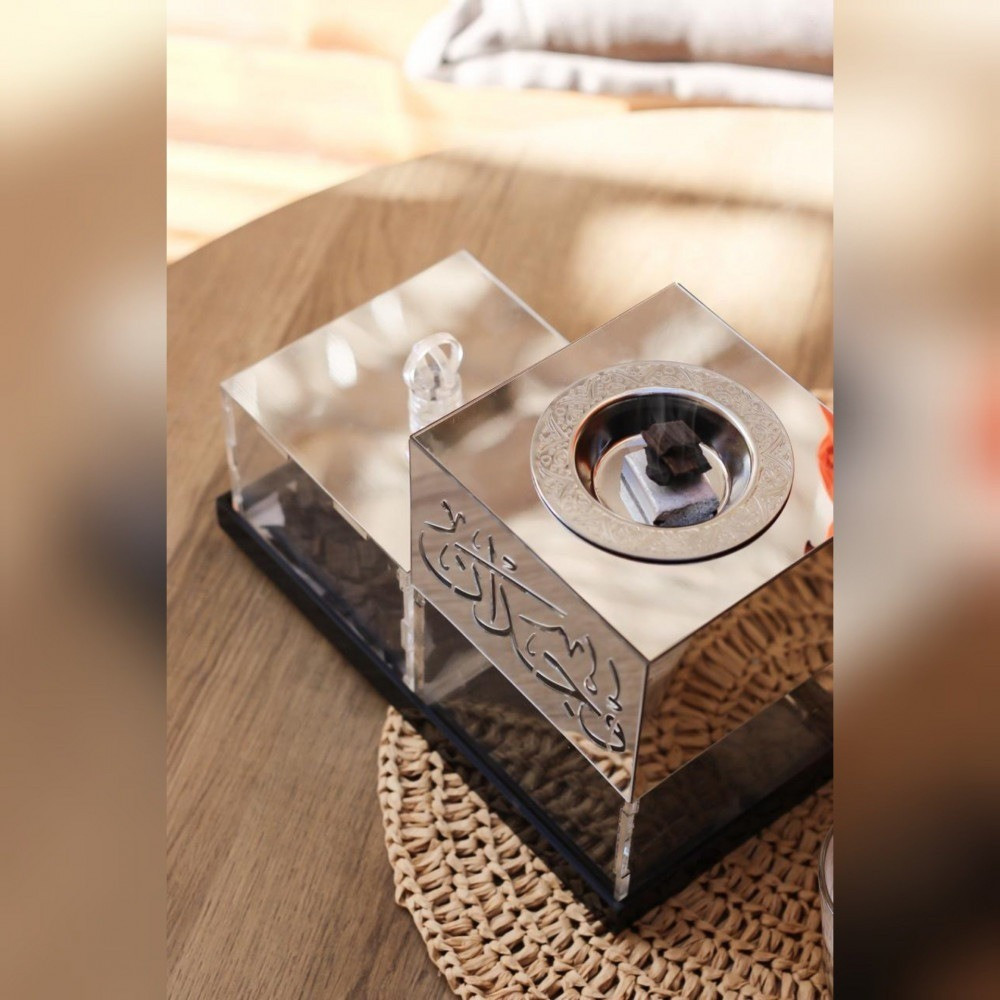 مبخرة مرايا انيقة و بسيطه وتضيف لمسة هادئة لديكور منزلك.يتم نحت الاسم بدقة متناهية على المبخرة لتضيف طابع خاص بك.